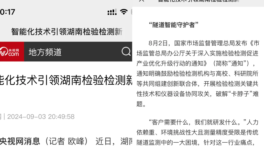 央視網報道!致力科技隧道智能監測獲關注!
