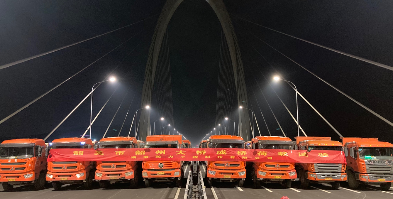 NEWS2月1日晚,伴隨著轟鳴的聲音,24輛滿載的渣土車在有序指揮下分批次開上了韶州大橋,成為第一批上橋的“嘉賓”。經過2個夜間通宵辛苦作業,由湖南致力工程科技有限公司實施的“粵北第一橋”韶州大橋荷載試驗順利完成。